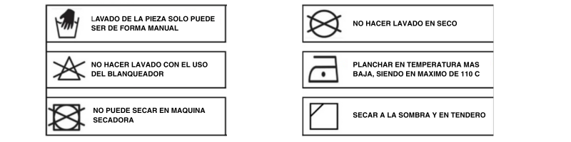 Usar siempre jabón neutro, no usar suavizante, ni otros productos de limpieza que puedan dañar los colores.